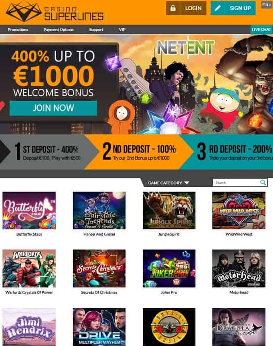 Even if a casino offered terrible service, average game play and minimal deposit methods they’d still get lots of player with a welcome package like that! Luckily at SuperLines there isn’t a lack of quality in other areas, but we’ll come to that in a moment.